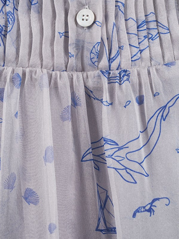 Die meisten Drucke und Stoffe sind Liberty Fabrics. Ausgehend von dieser Sammlung entstand mit Hilfe eines jungen Künstlers ein Veraroad-Druck, der von der Liebe der Ozeane inspiriert wurde, Kiss the Ocean.