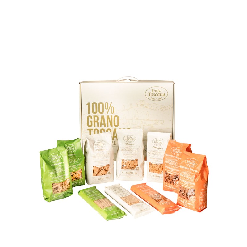 1 Tuscan Pasta Selection Case containing 9 mixed packs of the classic, organic and organic omega 3 wholemeal line.