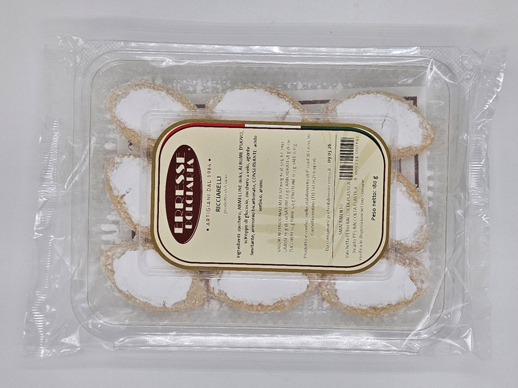 I Ricciarelli Erresse Dolciaria sono dolcetti tipici senesi preparati secondo la tradizione toscana, ottenuti da un impasto raffinato a base di armelline dolci e zucchero. Morbidi, profumati e ricoperti da un leggero velo di zucchero a velo, rappresentano uno dei simboli della pasticceria natalizia toscana. Perfetti da gustare a fine pasto, con vini da dessert o tè aromatici.