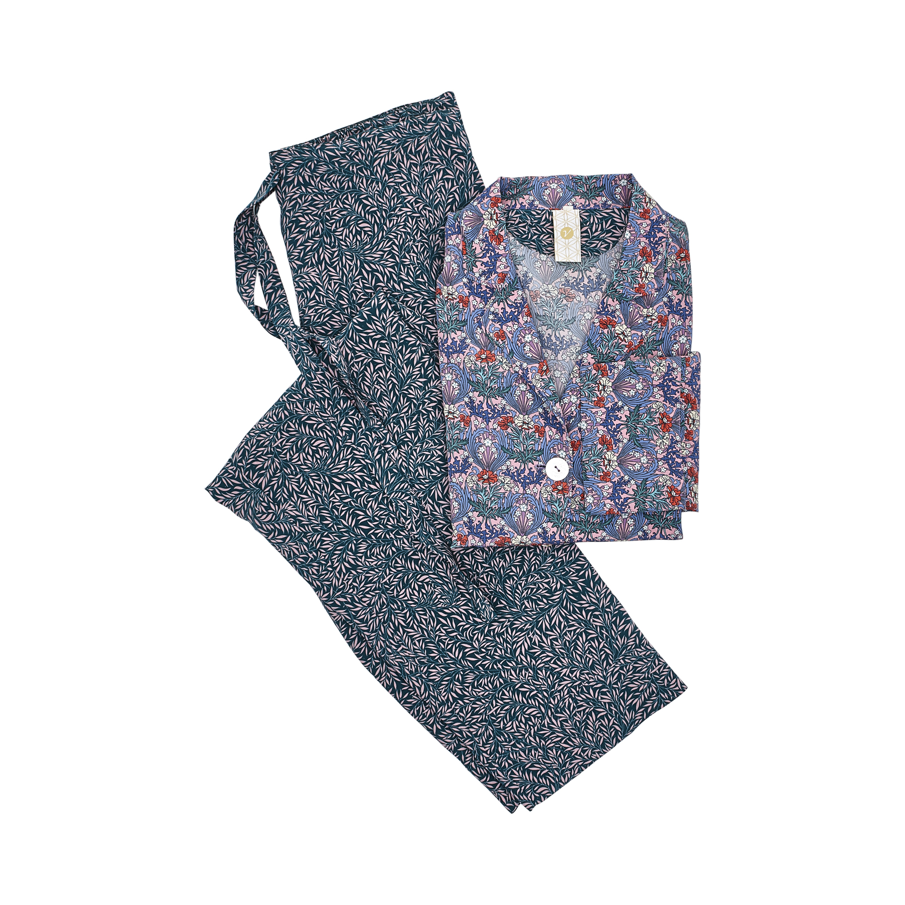 Katy, un set spezzato composto da giacca rosa e pantalone verde in seta crêpe de chine.